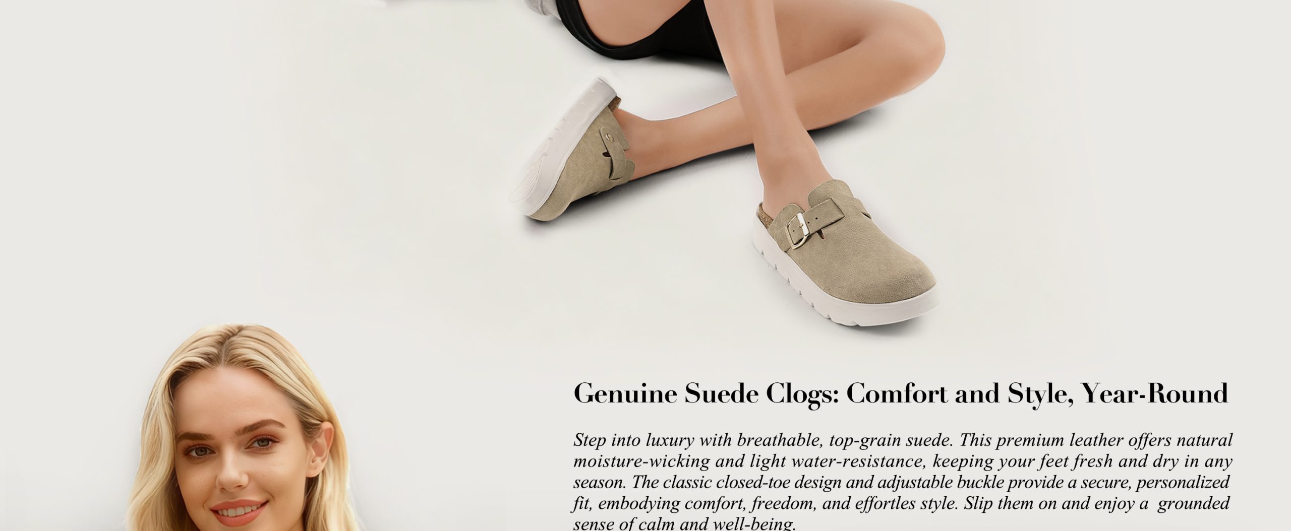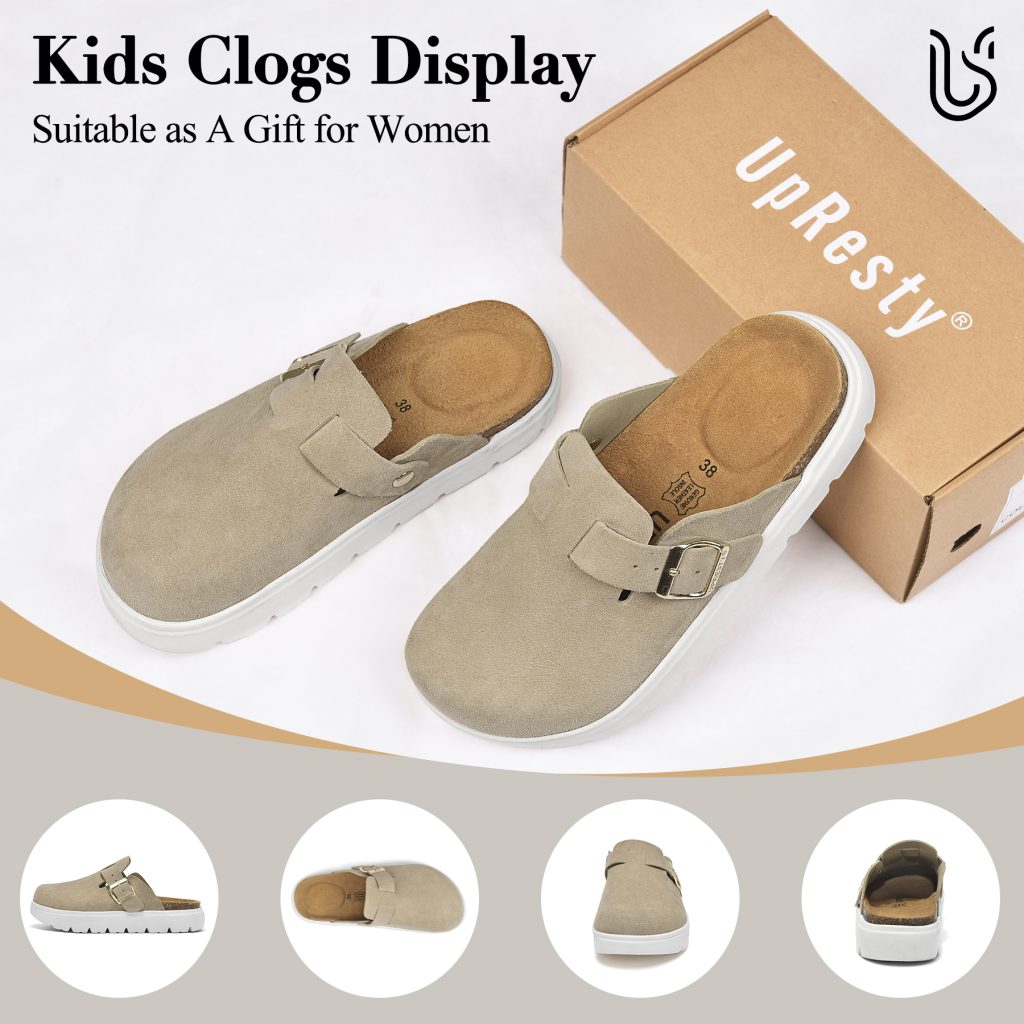 - 100% Genuine Suede – Premium Inside & Out: Unlike many clogs that only use leather in the insole, UpResty goes further – both the footbed and the upper are crafted from genuine suede leather. Known for its buttery-soft touch and natural comfort, real suede gently molds to your feet over time, delivering a personalized fit. To support outdoor wear, the upper is treated with a water-repellent finish that helps resist light splashes and keeps feet dry