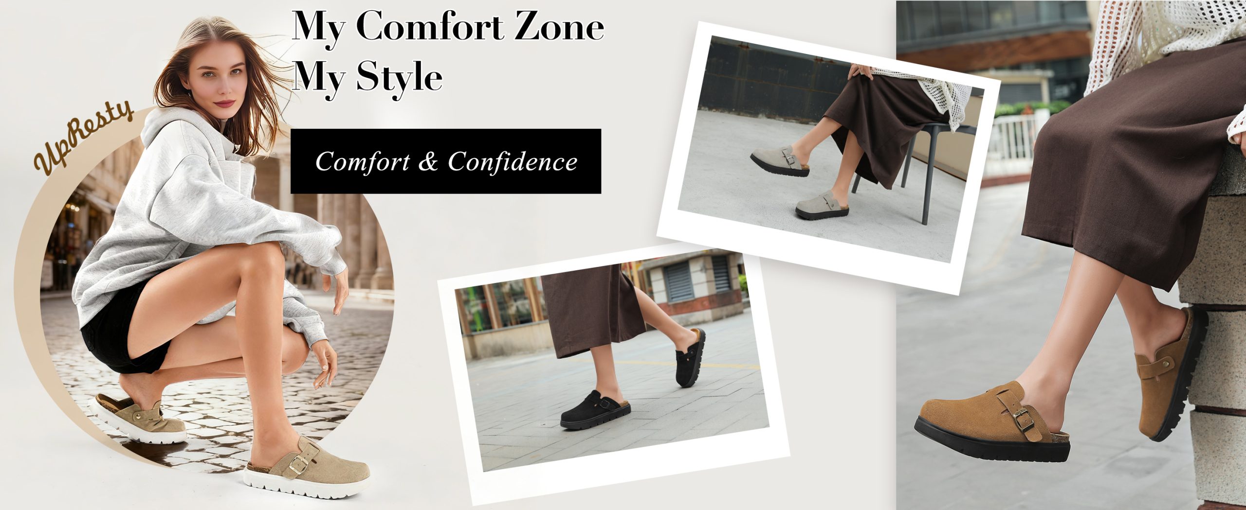 - Timeless Style, Made for Every Occasion: With adjustable straps for a custom fit, UpResty Slip on clogs are perfect for wide feet, high arches, or anything in between. From business trips to weekend getaways, these versatile slip-ons combine classic clog design with modern comfort. The platform sole boosts stability and support, making them your go-to pair for every season. Effortlessly pairs with anything from jeans to dresses.